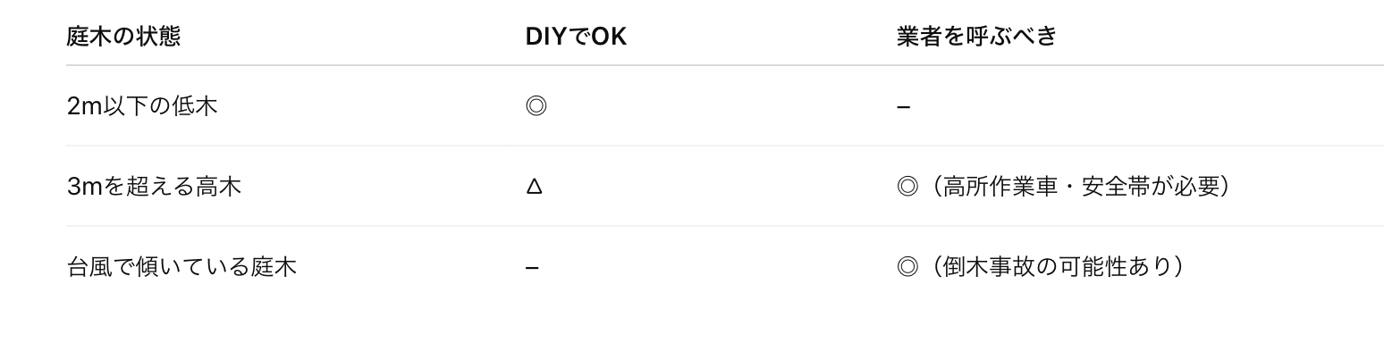 「この木、切って大丈夫?」「軽く整えるだけでも頼める?」