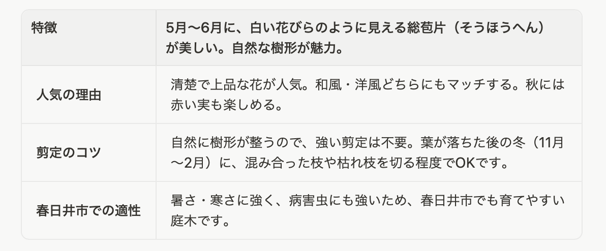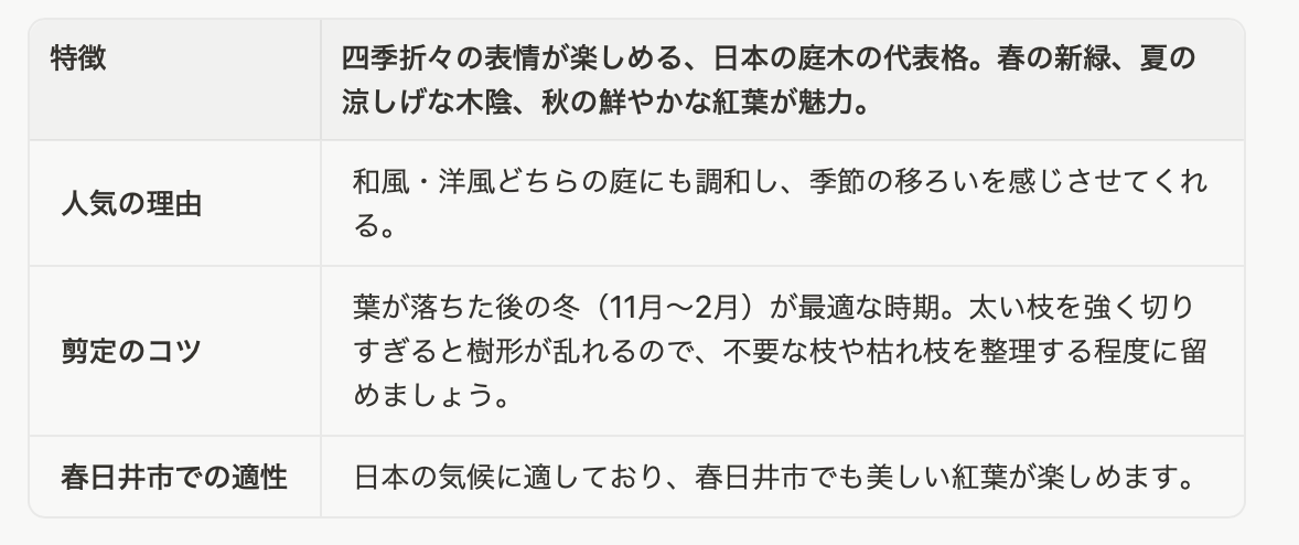 •豊富な実績: 豊田市・春日井市を中心に、多くのご家庭で庭木選びから剪定までお手伝いしています。